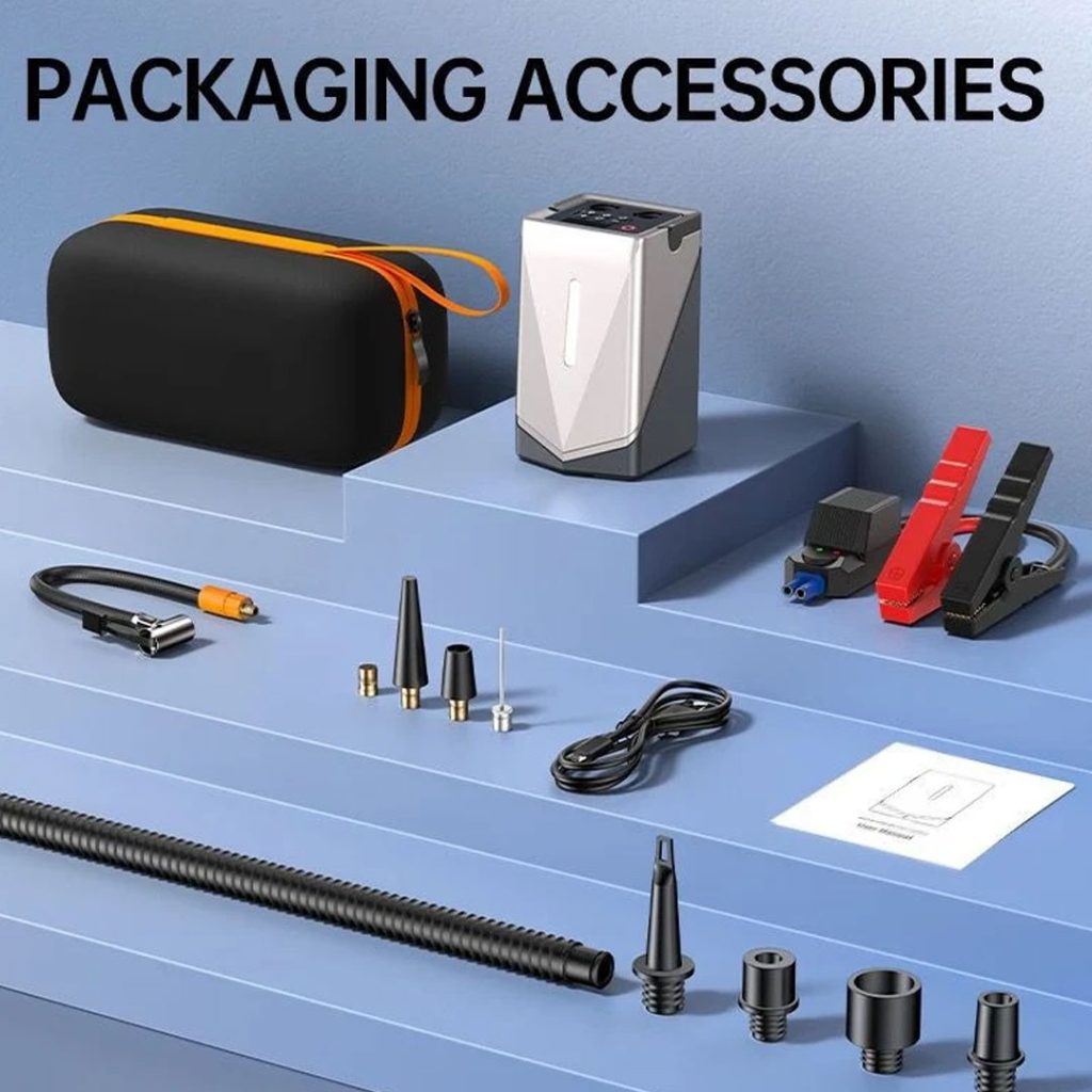 جامپ استارتر GF01 یک ابزار چندکارهی حرفهای و ضروری برای هر خودرو است که در شرایط اضطراری، خیالتان را کاملاً راحت میکند. این دستگاه همزمان نقش جامپ استارتر باتری خودرو، پمپ باد دیجیتال، پاوربانک و چراغ اضطراری LED را ایفا میکند و گزینهای ایدهآل برای سفر، استفاده روزمره و نگهداری در خودرو محسوب میشود.
