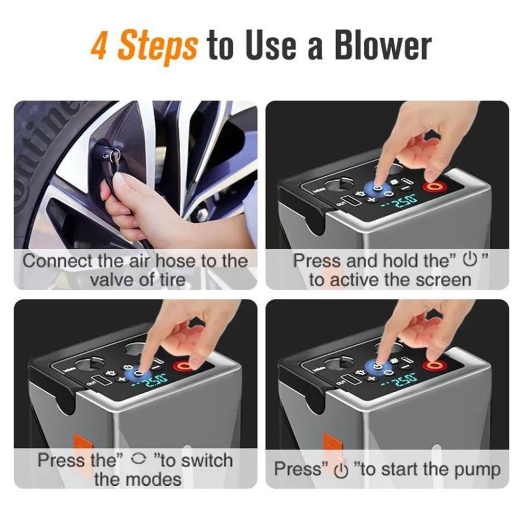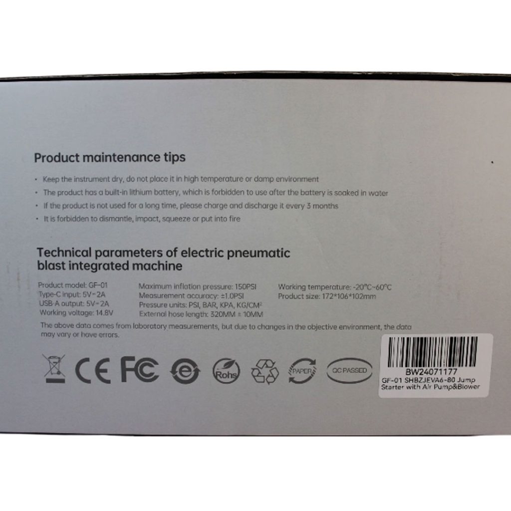GF01 مجهز به کمپرسور باد داخلی است که برای باد کردن لاستیک خودرو، موتور، دوچرخه و تجهیزات بادی سبک کاربرد دارد.